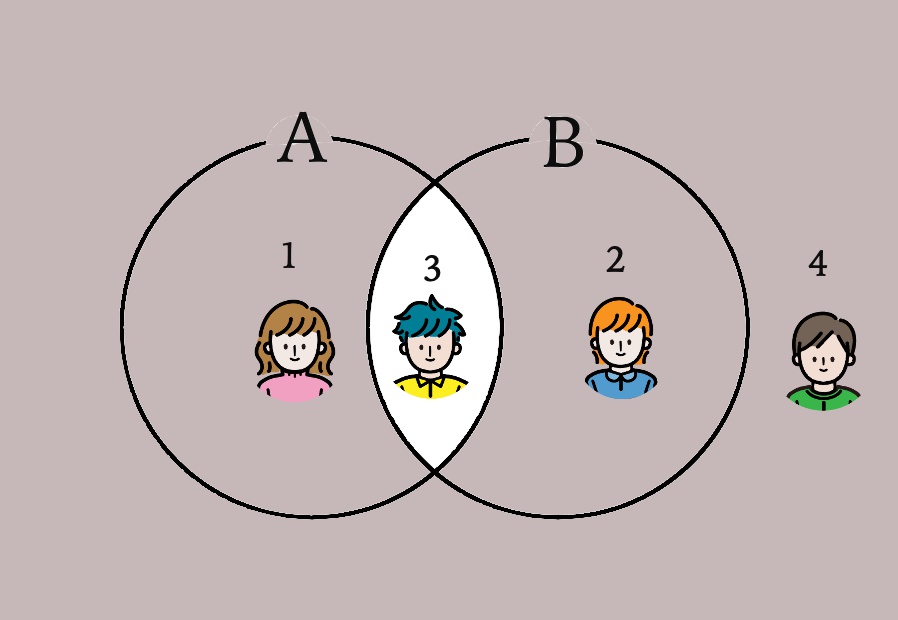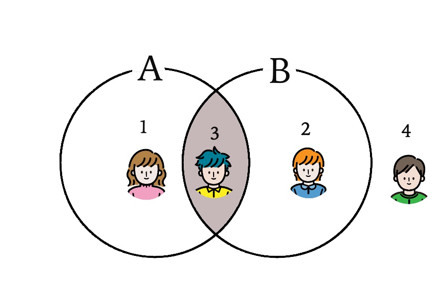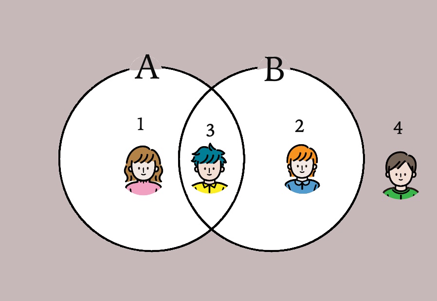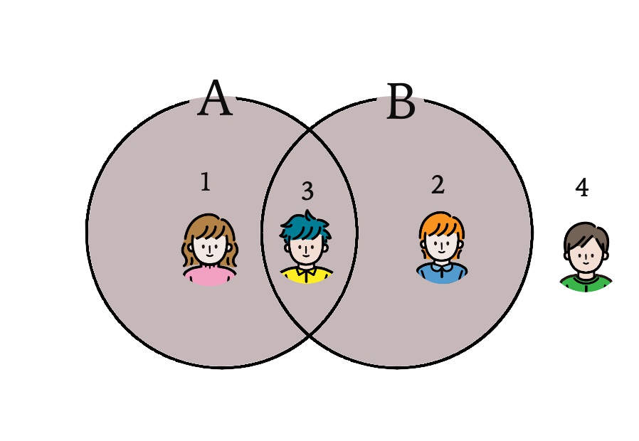 以下のように、「A を含む人」 と「B を含む人」の