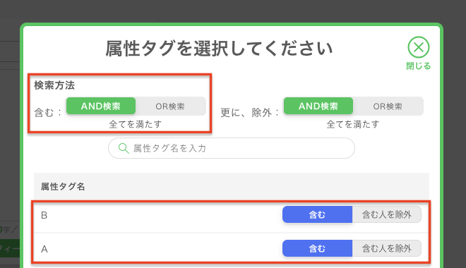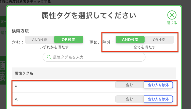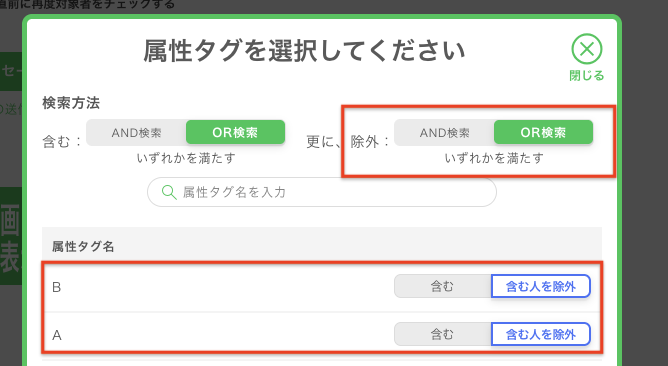 複数の「属性タグを除いた人に配信する」設定(AND検索・OR検索)
