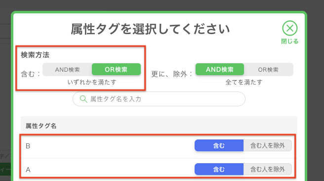 複数の「属性タグを含む人に配信する」設定(AND検索・OR検索)