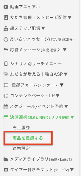 決済連携>商品を登録するページにて