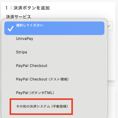 その他の決済システム(手動登録)を選択して