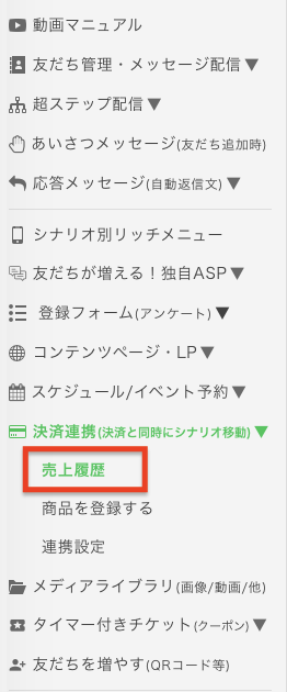 決済連携>売上履歴ページにて