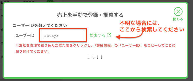 ユーザーIDが不明な場合は「検索する」をクリックして
