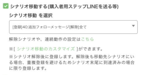 購入時のシナリオ移動の設定が登録できますので、