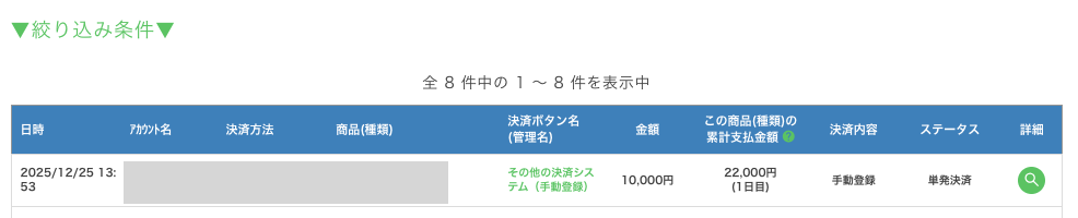決済連携の機能を使って手動で決済登録を行うことができます。