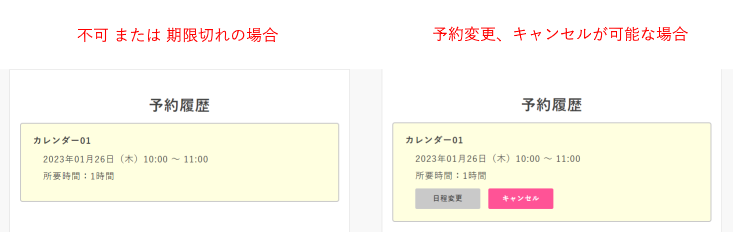 許可されており、期限内の場合のみ、「予約変更」「キャンセル」ボタンが表示されます。