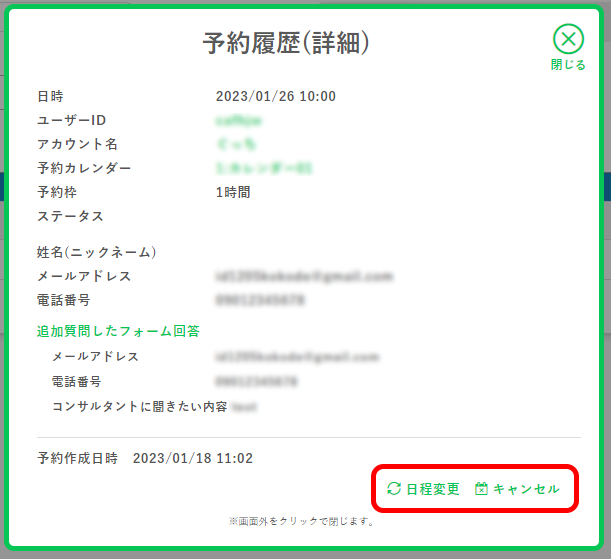 手順2:予約詳細モーダルが表示されます